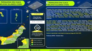Prakiraan Cuaca Sulawesi Utara Malam Ini, Wilayah Berpotensi Hujan